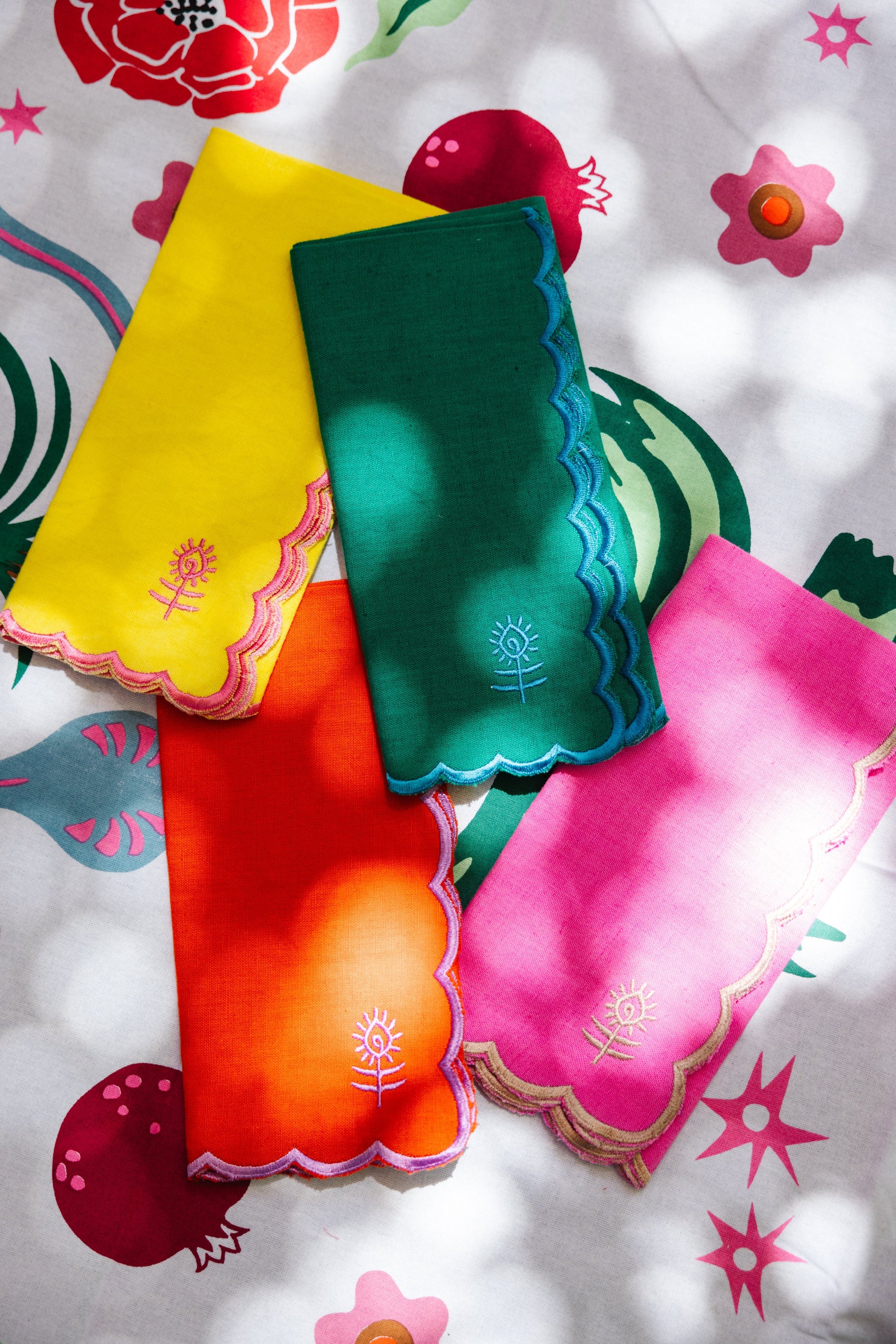 Exclusive to Furbish, these scalloped linen napkins are an entertaining go-to. Crisp luxe linen with coordinating contrast trim, and a charming embroidered logo in the bottom corner.
